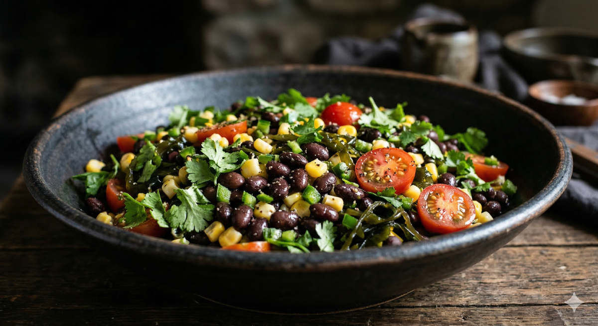 No heat required. The entire batch assembles in 15 minutes and yields six servings of fiber-dense, resistant starch-loaded fuel. The wakame adds iodine, magnesium, fucoxanthin, and omega-3 fatty acids for near-zero calories. The dulse flakes replace salt. Eat this cold from the fridge — reheating degrades the RS3 resistant starch that the cooled black beans generate, and that RS3 is the entire point of keeping beans in the rotation.